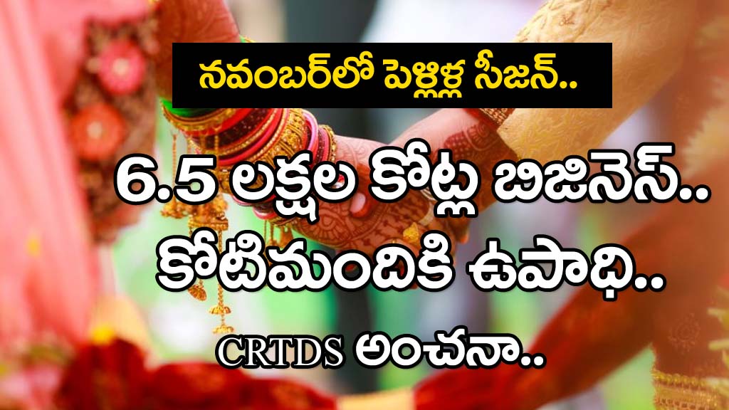 కార్తీక మాసంలో పెళ్లిళ్ల జోరు విపరీతంగా ఉండబోతుంది. ఇప్పటికే శుభముహూర్తాలు ఉండడంతో చాలా చోట్ల పెళ్లిళ్లు జరుగుతున్నాయి. అయితే నవంబర్ 1 నుంచి వరుసగా శుభముహూర్తాలు ఉండనున్నాయి. నవంబర్ 2,3,6,8,12,13,16,17,18,21,22,23,25,30 తేదీల్లో శుభముహూర్తాలు ఉండనున్నాయి. ఈ నేపథ్యంలో ఆయా రోజుల్లో శుభకార్యాలు నిర్వహించుకోనున్నారు. ముఖ్యంగా ఈ తేదీల్లో పెళ్లిళ్లు జరిగే అవకాశం ఉంది. అయితే పెళ్లి సీజన్ కారణంగా దేశంలో కోట్ల వ్యాపారం టర్నోవర్ అవతోందని కొన్ని ఆర్థిక సంస్థలు తెలుపుతున్నాయి. ఇందులో భాగంగా CAIT Research and Trade Development Society (CRTDS) దేశంలో 6.5 లక్షల కోట్ల రూపాయల వ్యాపారం అవుతుందని అంచనా వేసింది.