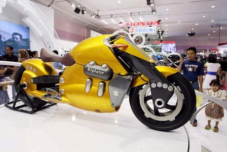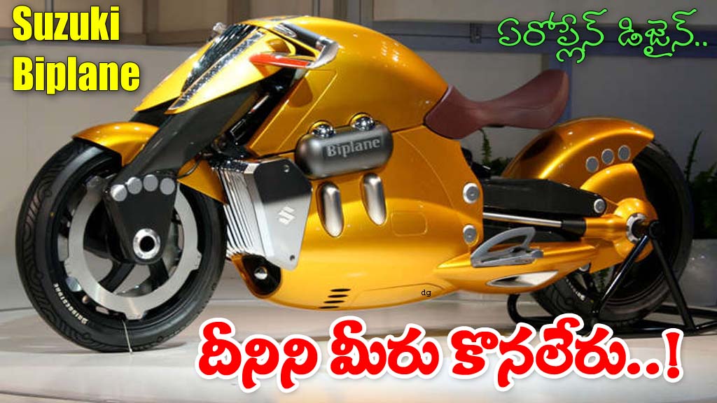 2007 టోక్యో మోటార్ షోలో మొదటిసారి ప్రపంచానికి పరిచయమైన ఈ ‘సుజుకి బైప్లేన్’, గాలిలో ఎగిరే బైప్లేన్ విమానాల ఆకృతిని పోలి ఉంటుంది. దీని బాడీ మొత్తం ఏరోడైనమిక్ డిజైన్తో ఉండి, గాలిని చీల్చుకుంటూ వేగంగా వెళ్లేలా రూపొందించబడింది. ఆ బంగారు రంగు (Gold Finish) మెరుపులు, సీటు అమరిక దీనికి ఒక లగ్జరీ లుక్ను ఇస్తాయి. రైడర్ ఈ బైక్ పై కూర్చున్నప్పుడు బైక్ లోనే ఒక భాగంగా కలిసిపోయినట్లు అనిపిస్తుంది.